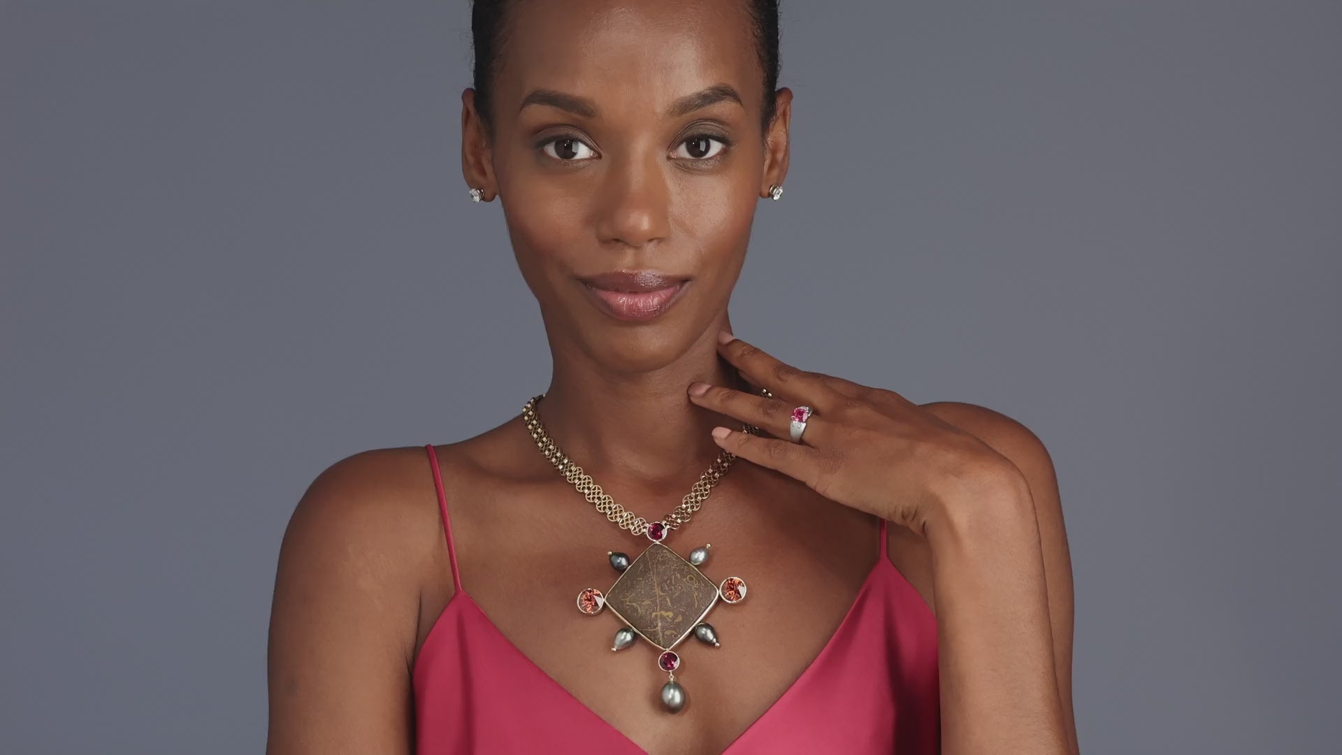 Incorporating Egyptian faience, Byzantine gold, Medieval metalwork, and more, every one-of-a-kind jewel is a contemporary amulet, celebrating millennia of craftsmanship and bodily adornment.